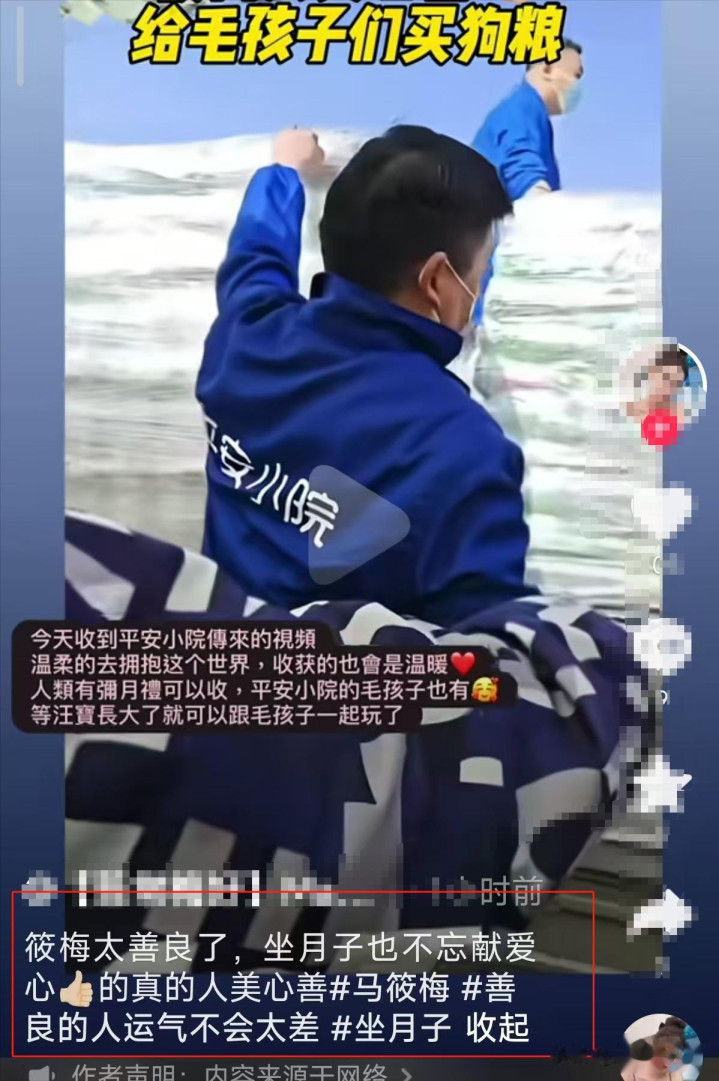 原本是她的孩子降生后,她还给一个叫吉祥小院的场地捐了2000斤狗粮。