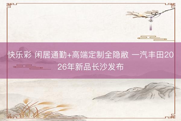 快乐彩 闲居通勤+高端定制全隐敝 一汽丰田2026年新品长沙